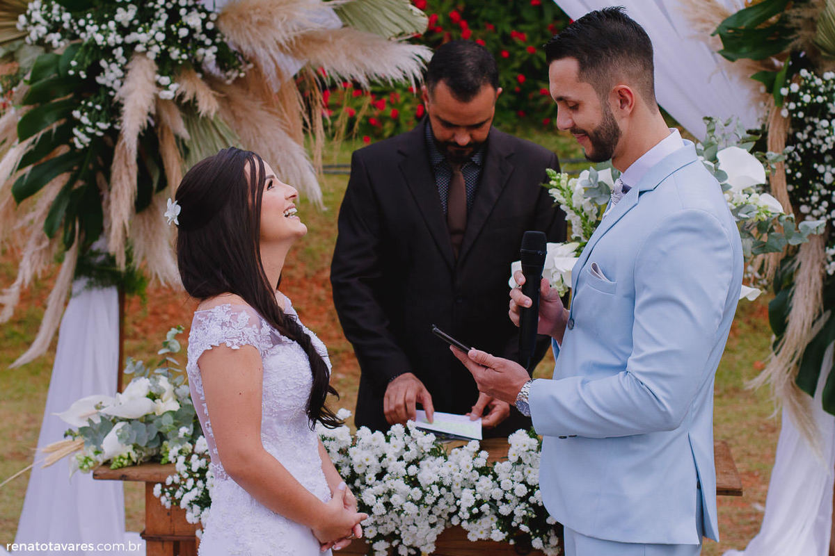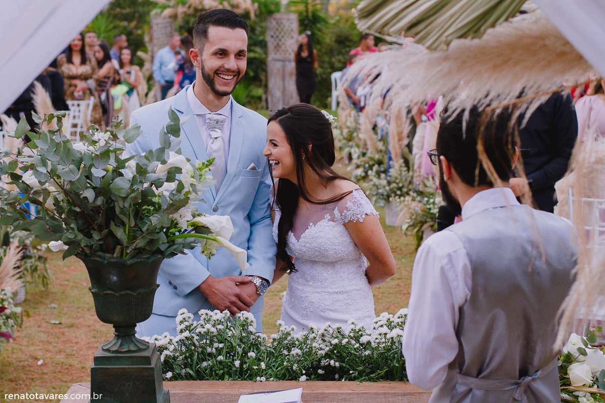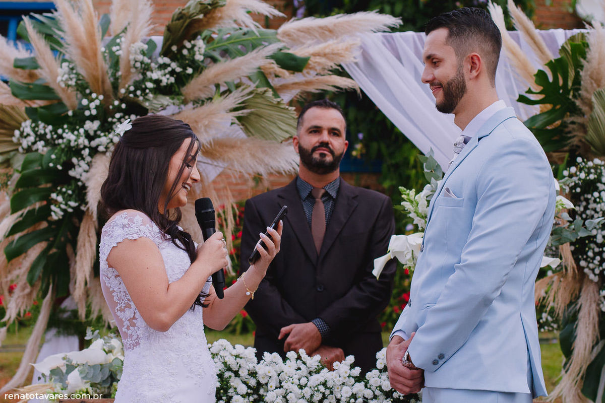 A cerimônia foi linda! Os votos dos noivos roubaram a cena, todos se emocionaram com o que ambos desejaram para o relacionamento deles.