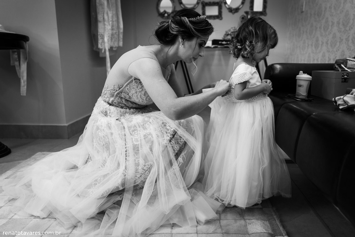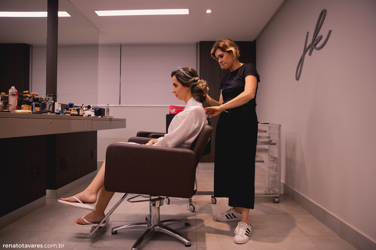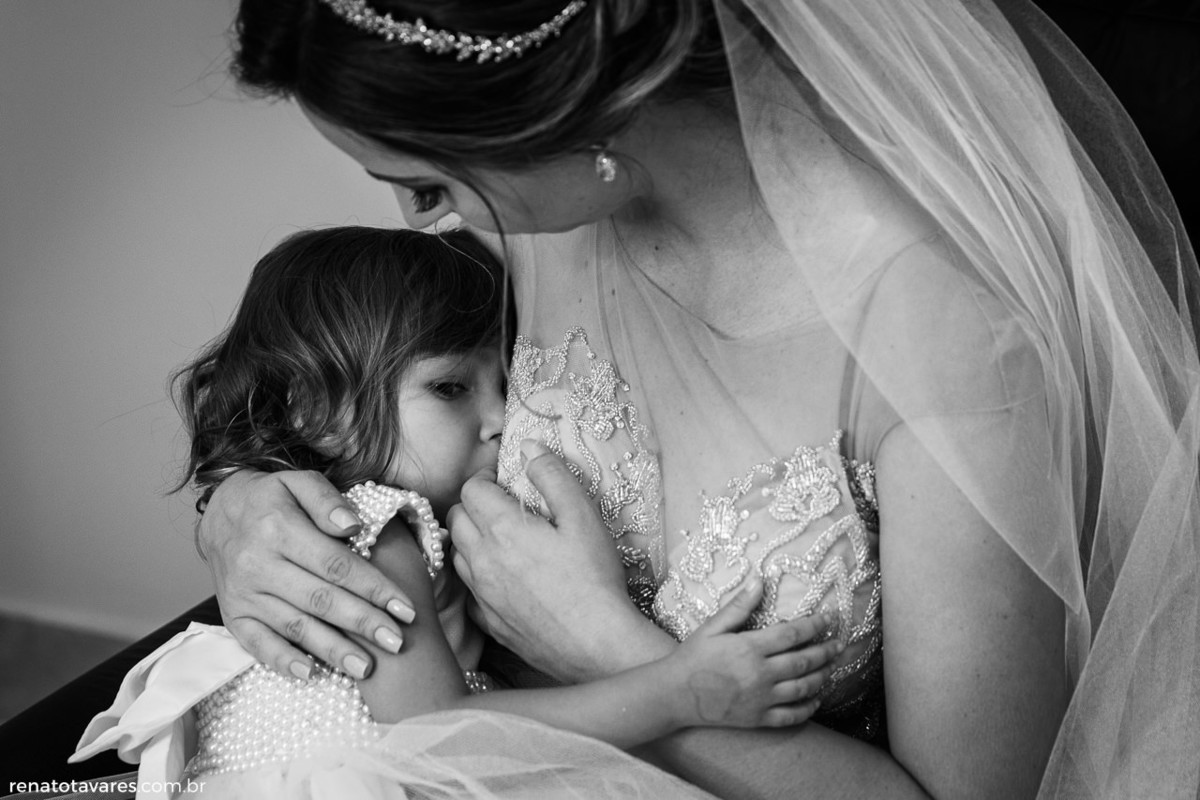 No dia em que nos casamos queremos que tudo saia como planejado, todos os detalhes, não ficando de fora o pessoal. Queremos o cabelo perfeito, a maquiagem perfeita, o vestido perfeito. Mas antes de ser noiva, a Flávia é mãe e como sabemos, os filhos são prioridade na vida delas. Depois que a Maria Tereza chegou ao salão, vimos uma noiva/mãe que se despiu da vaidade para amamentar, dar carinho e consolar uma filha de dois anos que não estava entendendo muito bem aquele dia fora da rotina que ela conhece.