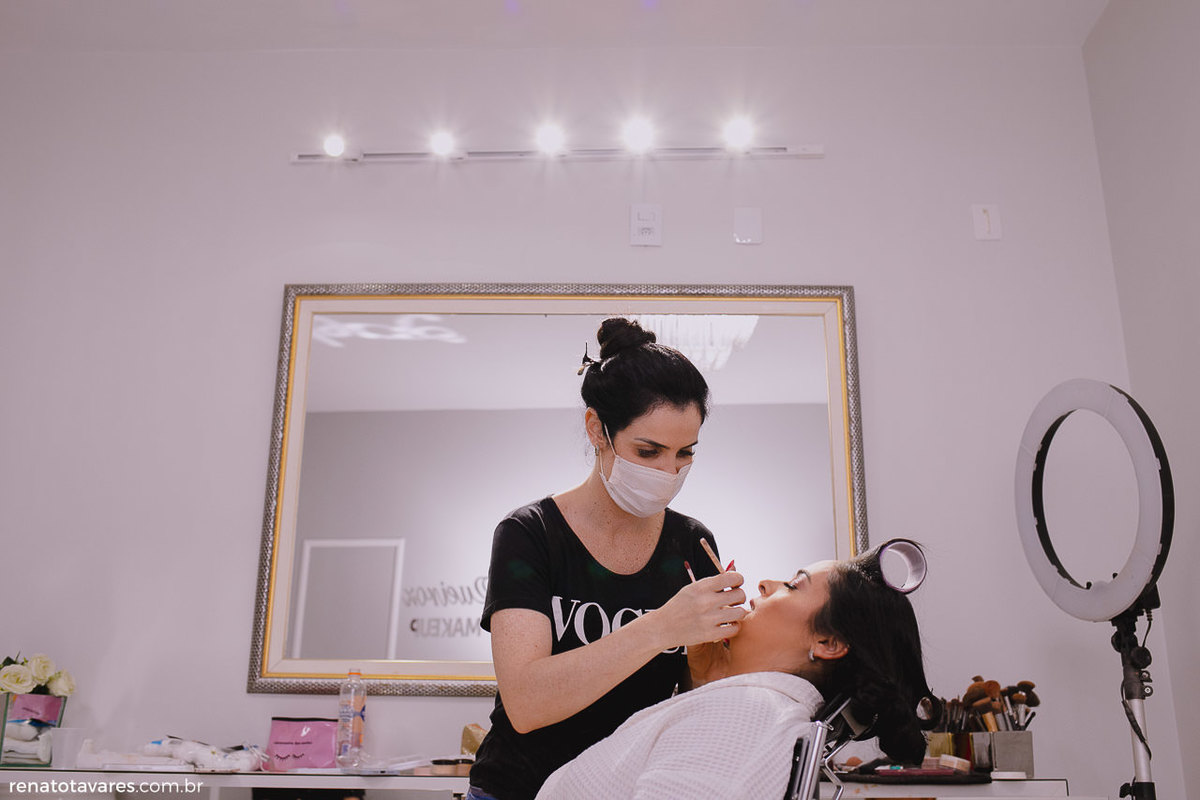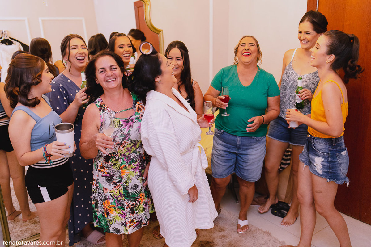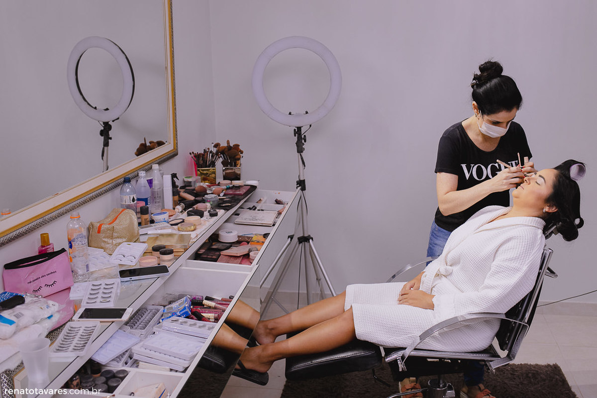 Quando finalmente o dia chegou, o making of da noiva já começou mostrando como seria a noite, animadíssima! Stella Artois que o diga. 😏