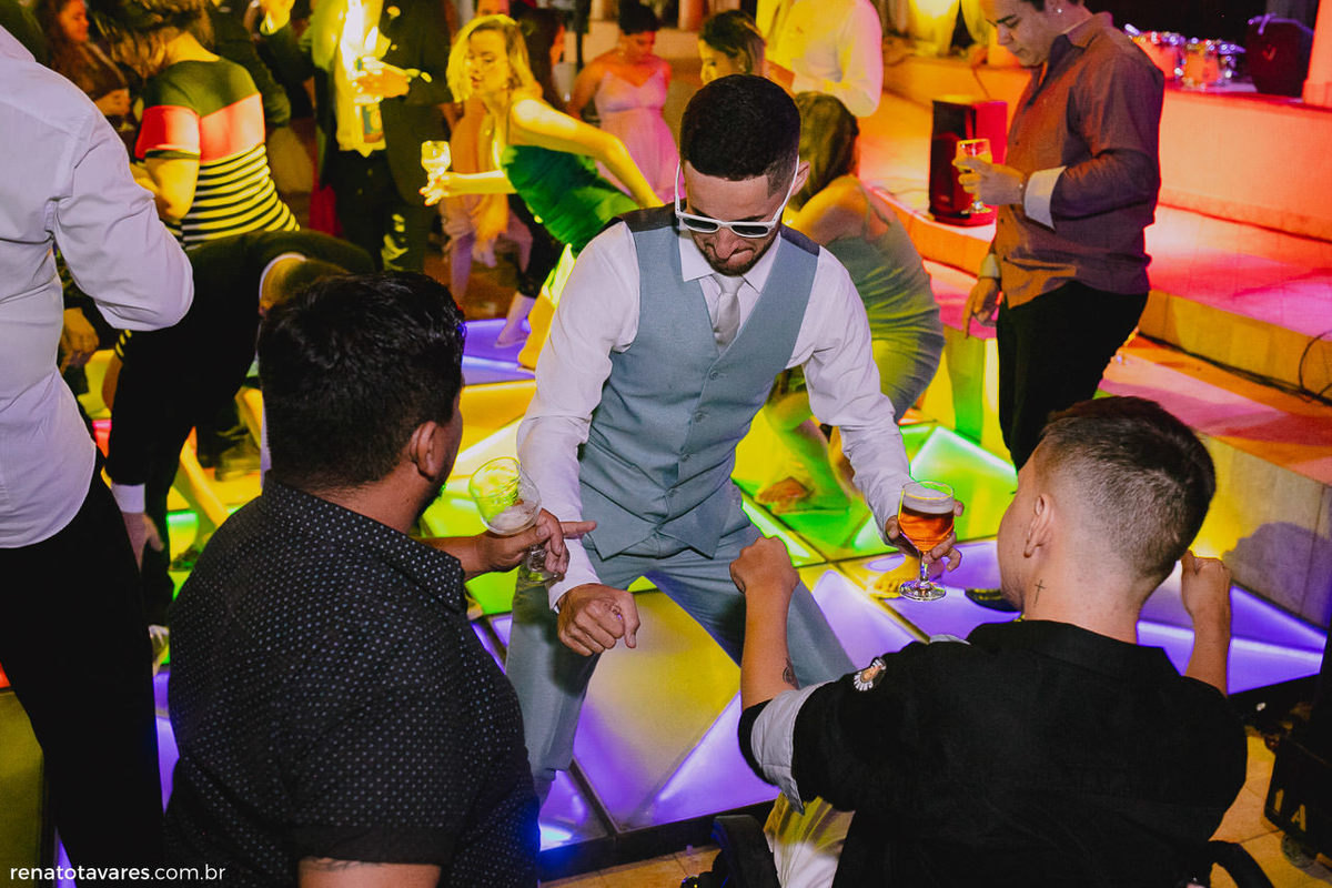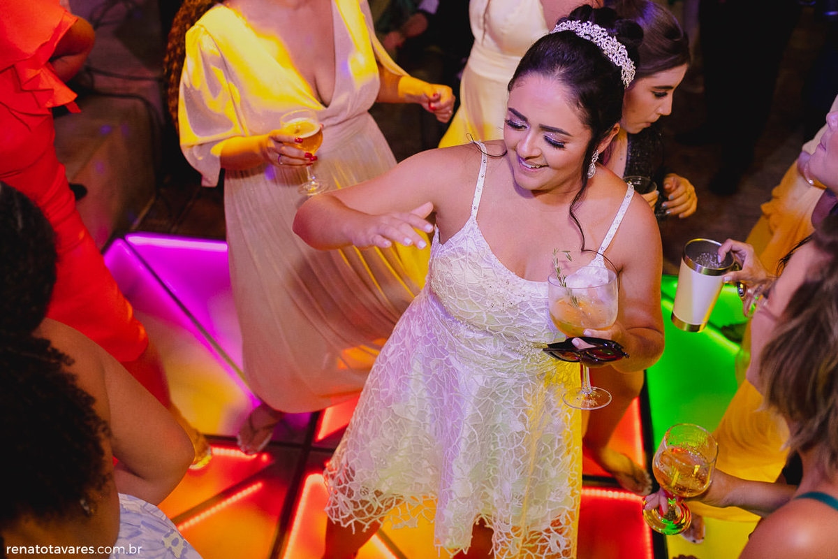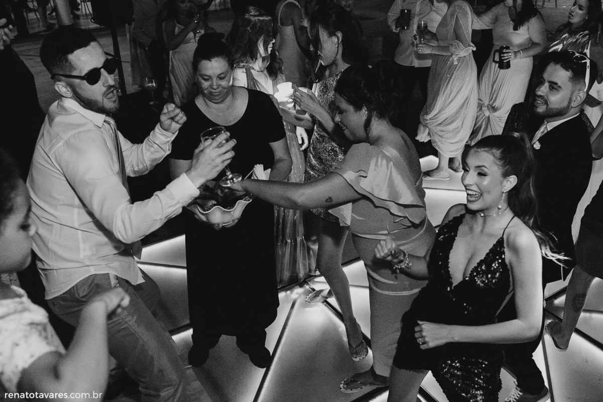 Finalmente o grande momento onde eles se encontram no altar. A cerimônia foi linda, emocionante, os dois conectados e entregues a esse momento tão especial que eles puderam dividir com a família e os amigos. A festa, como já era previsto, estava animadíssima! Rolou batidão até o sol raiar.